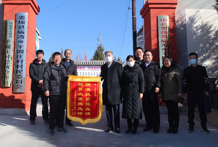 羊圈莊村兩委為感謝集團公司多年來對脫貧工作的大力幫扶,特意為集團公司送上了一面寫有“精準扶貧顯真情 脫貧攻堅當先鋒”的錦旗。走訪中,集團公司黨委書記、董事長郝東輝,黨委副書記、董事閆水平一行走訪慰問了貧困戶張開正和趙秀亮,為他們送上了慰問金及米、面、油、春聯等慰問品,并向他們致以新春祝福。每走訪一戶,集團公司領導都與貧困戶及其家屬面對面交談、心貼心交流,詳細了解了他們的家庭狀況及身體近況,鼓勵他們積極面對生活,堅定脫貧信心,通過自己的辛勤勞動早日實現脫貧致富。