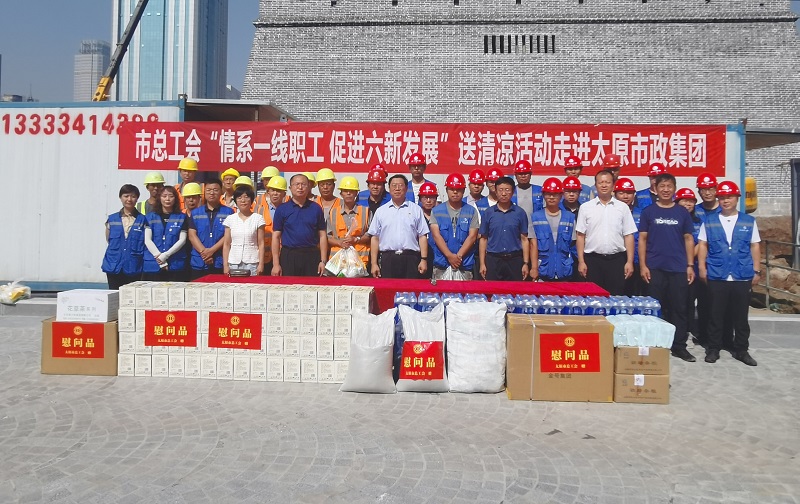 集團公司黨委委員、監事會主席、工會主席馮忠代表太原市政集團對太原市總工會深入施工一線進行“送清涼”慰問表示衷心感謝,并希望奮戰在一線的職工、農民工注意防暑降溫,做好個人防護,優質高效完成施工任務。