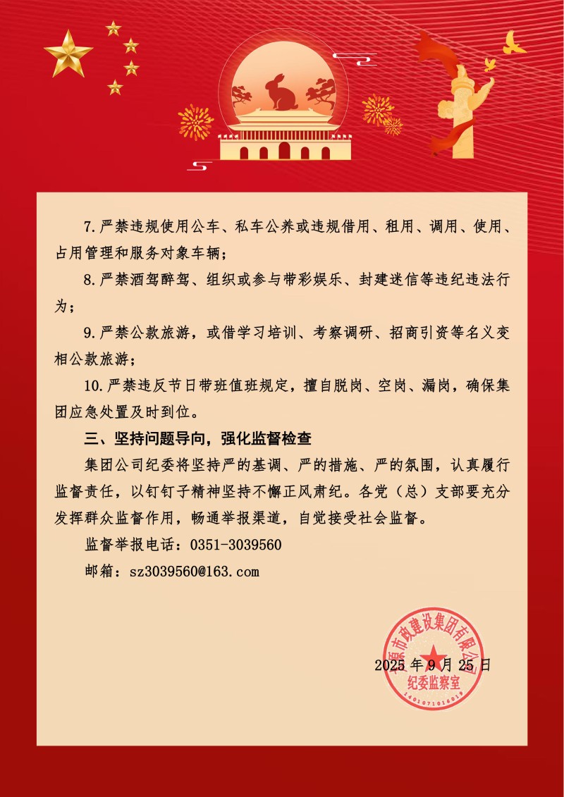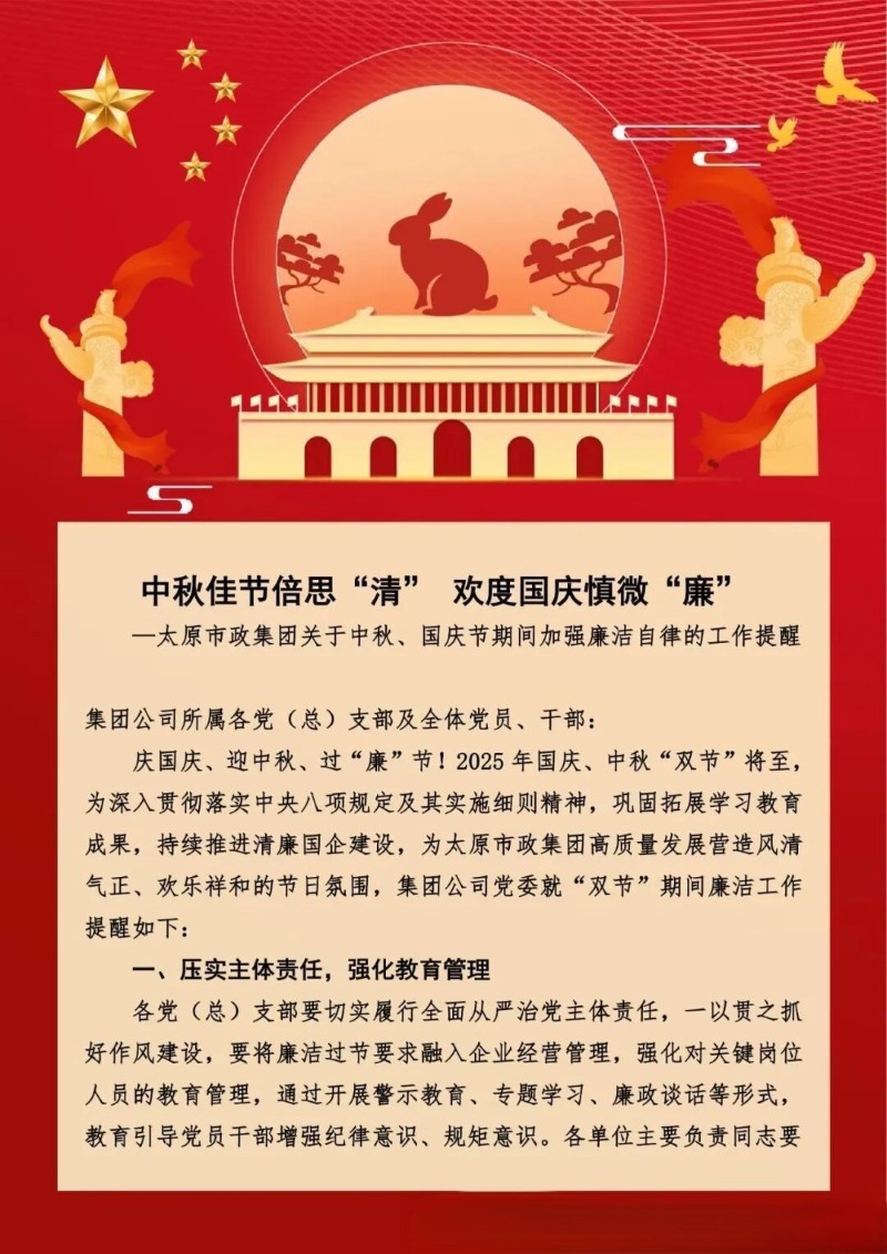 太原市政集團關(guān)于中秋、國慶節(jié)期間加強廉潔自律的工作提醒