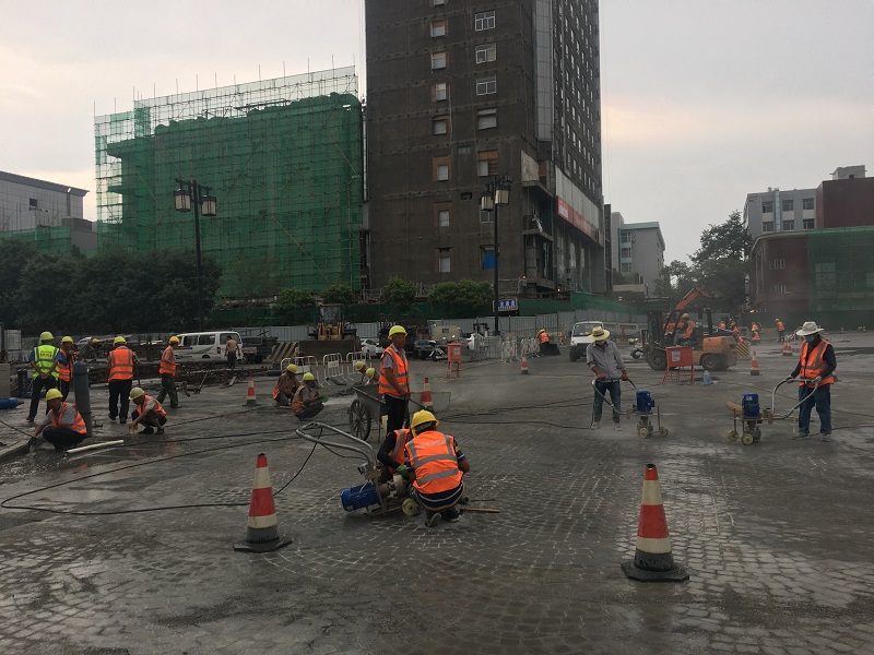 夏日的燥熱抵擋不住全體施工人員的工作熱情,為了全力推進(jìn)工程建設(shè),項(xiàng)目部合理延長每日施工作業(yè)時(shí)間,增加作業(yè)班數(shù),不分晝夜進(jìn)行施工作業(yè)。為了有效提高施工速度,項(xiàng)目部采用流水作業(yè)的施工方式,多工作面平行作業(yè),提高機(jī)械利用率。同時(shí),項(xiàng)目部針對(duì)季、月、旬作出詳細(xì)計(jì)劃,建立起進(jìn)度協(xié)調(diào)工作制度,每周組織項(xiàng)目部管理人員及各工隊(duì)組長召開施工調(diào)度會(huì),重點(diǎn)解決施工中的技術(shù)難題,以及計(jì)劃執(zhí)行情況和存在的問題,隨時(shí)根據(jù)施工情況調(diào)整各施工項(xiàng)目的人力、機(jī)械和材料用量,全力以赴推進(jìn)工程進(jìn)度。截至7月20日,廣場(chǎng)環(huán)路、迎澤南街路面磚鋪裝已完成100%,廣場(chǎng)西路鋪裝已完成90%,廣場(chǎng)東路完成63%;并州北路及廣場(chǎng)南路完成35%;廣場(chǎng)總鋪裝面積3萬多平米,已完成總鋪裝量的50%。