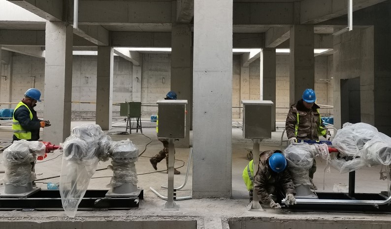 項目部全體施工人員始終堅守一線,調配資源、集中攻堅、倒排工期、掛圖作戰,按施工難度及施工進度要求,通過科學的冬季施工方案克服低溫等不利條件,合理安排工序銜接,強化過程控制,全力推進項目建設。項目部正在進行設備安裝及室內裝修。截至目前,項目部已經安裝完成9臺水泵,占總工程量的50%;安裝完成11臺閘門,占總工程量的65%;安裝完成37臺水洗門,占總工程量100%。雨水管線累計完成210米,占總工程量的48%;二次澆筑累計完成16886方,占總工程量的99%;附屬建筑累計完成960方,占總工程量的95%;附屬結構累計完成936方,占總工程量68%。