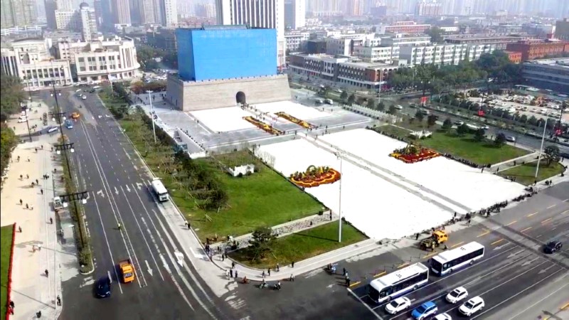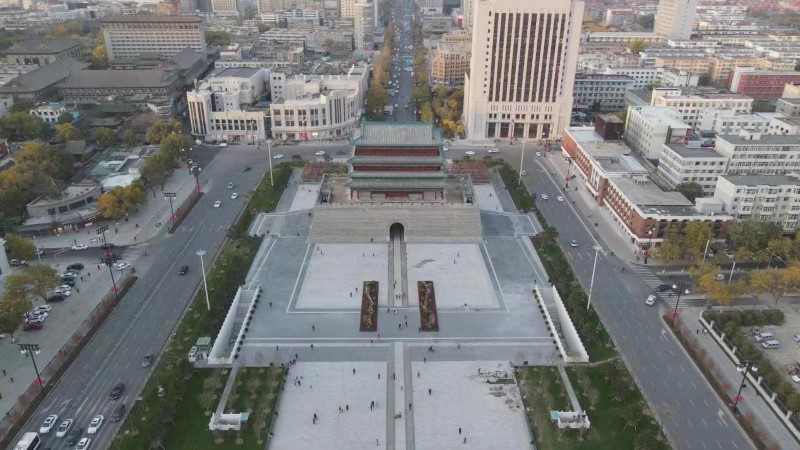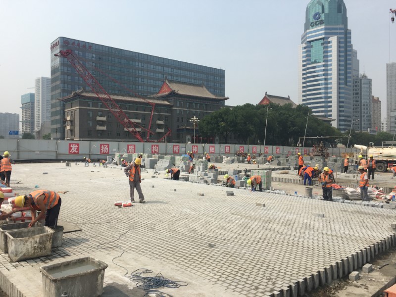 太原市五一廣場改造工程市政道路及管網工程包括環五一廣場一周的廣場西路、廣場環路、廣場東路、廣場南路、迎澤南街、并州北路及廣場范圍內迎澤大街段道路改造,道路全長1.267公里,于2021年4月開工建設,由二公司負責承建。該工程經歷了近6個月的日夜鏖戰,于2021年10月1日圓滿完成了廣場周邊7條道路共35165平方米的道路建設任務,在集團公司施工史上創造了兩個“第一次”。其中,扇形花崗巖丁石鋪裝在集團公司施工中實屬首次,整個路面是由10厘米×10厘米×30厘米的花崗巖丁石鋪設而成。整個路面鋪筑由扇形面和方形面組成,整個工程扇形鋪裝面積達到19382平方米,而一個扇形面需要88塊花崗巖丁石,且其中有18塊需要進行切割,一個扇形面鋪裝需要經過測量放樣、丁石試拼、切割等十幾道工序,且在花崗巖丁石下側采用了總厚度達0.98米的道路結構層,極大程度上確保了鋪裝結構的穩定性和平整性。同時,為確保工程順利完工,項目部投入大量的人力資源,并優先選用工作細致、水平較高、技術熟練的施工隊伍,確保項目鋪裝進度和質量。項目部每天在1.1萬平方米的施工場地上投入250余名民建隊員進行花崗巖丁石鋪裝,同時每個隊伍按照放線-切割-安裝-灌漿-打磨的施工細節,實行“小團隊—流水線”作業,確保了扇形面積的鋪裝進度和質量。在當時工程即將完工之際,二公司更是從各項目部抽調技術骨干和民建隊員,全部投入到廣場最后沖刺,最終實現了五一廣場周邊道路的順利通車。