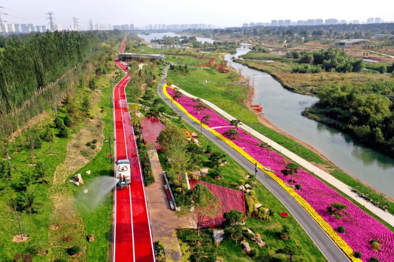 汾河生態景觀帶工程北起尖草坪區上蘭汾河漫水橋,南至柴村橋北500米,包括汾河景觀帶工程東岸一標段、二標段和西岸堤頂路工程,全長約18公里,主要包括橋梁工程、給排水工程和道路工程,于2021年1月開工建設,由三公司負責承建。該工程作為市重點工程,開工伊始就備受上級領導及廣大市民的熱切關注,全體施工人員夜以繼日、奮力拼搏,24小時不間斷施工,采用“時間不斷、空間占滿”的施工原則,掀起了大干熱潮,樹立“開工就是決戰,決戰必須決勝”的必勝信念。在短短35天內,西岸堤頂路8400米的道路工程全部完成;由于需要緊急進行降井作業搶修,15家基層單位歷經113個小時聯合作戰,完成降井施工任務,彰顯了新時代市政速度。施工中,項目部堅持“高標準起步、高質量建設、高效率推進”,通過進行技術交底,組織技術培訓,實行統一管理,完善工作機制,為保障工程質量打牢堅實基礎;召開成本分析會,細化成本目標,學習文明施工管理規定,嚴格安全技術交底,制定疫情防控預案,加強施工現場的成本控制和安全管理。隨著西岸堤頂路彩色陶瓷顆粒的鋪設完畢,汾河景觀帶工程猶如兩條紅色的長龍,蜿蜒在汾河兩岸,為城市增添了一抹絢麗的色彩。