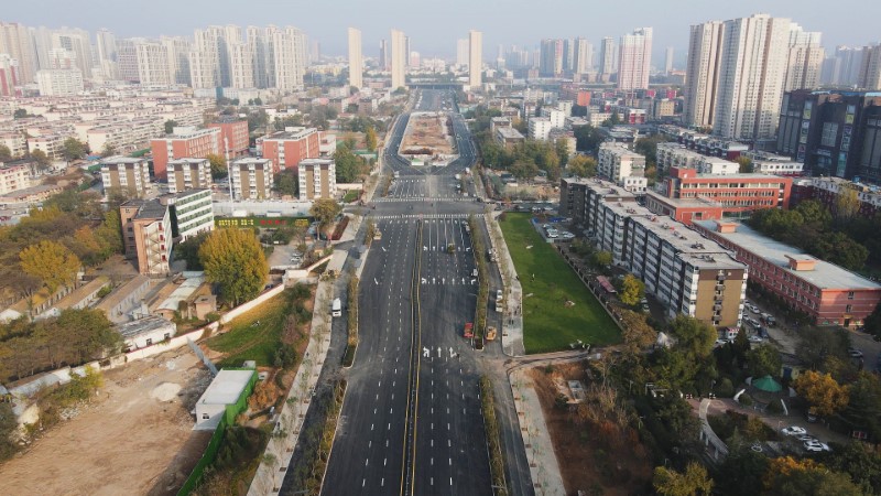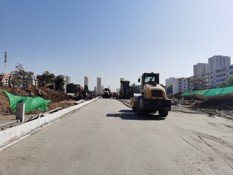 迎澤大街東延建設工程長約1.25公里,寬70米,建設內容包括道路、地道、擋墻、排水、電力等,于2021年5月開工建設,由八公司負責承建。根據現場施工條件,該工程全線形成多點開花、分段作業的局面,多道工序在施工作業面同時展開、互不影響,有效壓縮了工序間的銜接時間。施工期間,項目部主動配合國家電網、鐵路等部門,加快推進配電室改遷、10千伏水源線入地等作業,確保工程順利進行。施工中,項目部嚴控溝槽開挖,結合溝槽開挖較深且周期較長的情況,采用放坡開挖并打設鋼板樁的方式對土體進行加固支護,提升基坑整體穩定性,保證成型質量;強化溝槽回填,項目部采取管頂500毫米以下進行人工回填,管頂500毫米以上利用機械分層進行回填的方式,有效保證溝槽回填質量達到施工要求。同時,該工程臨近居民區,項目部全力做好安全施工,在圍擋、標識牌、警示標語、防護設施、灑水降塵等方面處處把關,嚴格要求,優質高效推進工程建設,全力打造安全文明標準化工地,并結合施工實際,修建臨時便道,解決下雨出行難的實際問題,保證居民日常出行安全,得到了居民們的交口稱贊。全體參建人員擼起袖子、鼓足干勁,保質保量完成各項施工任務,作為“三晉第一街”的迎澤大街也以嶄新面貌出現在廣大市民面前,成為連接東西兩山的一條通衢大道。