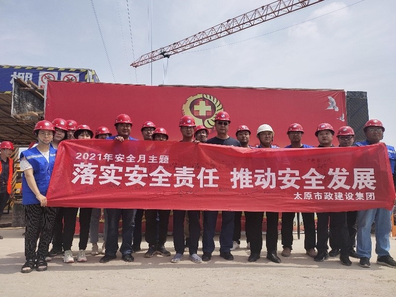 6月15日,四公司在太原市利用供熱管網輸送晉陽污水處理廠中水工程再生水車間建筑安裝工程項目部召開了2021年“安全生產月”動員大會。太原市熱力集團有限責任公司第六供熱分公司副經理段軍偉、副經理史向兵、相關科室負責人,集團公司副總經理王志強,安全部負責人、項目部負責人等共35人參加會議。