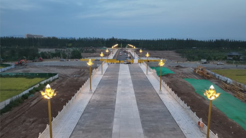 凈因橋整體裝修風格以“汾河出水第一橋”為理念,突出“首橋之風、古樸厚重、大氣自然”。橋梁欄桿選用青白石欄板,采用忍冬紋、蓮花紋、祥云紋、鏤空如意組合紋樣,安裝過程中從勾縫到密封,施工人員精工細作、寸寸抹平,確保欄桿整體平整美觀,讓大橋更具細節韻味;橋身墻體選用黃金麻,第四跨主拱上設避水獸,寓意風調雨順、國泰民安,從墻身施工到石材安放,施工人員高空作業、耐心細致,確保橋梁整體裝飾效果;大橋路燈采用蓮花燈頭,寓意清凈之蓮,從線路安設到路燈架設,施工人員精細施工、安全作業,亮化施工與橋梁結構、裝飾材料緊密結合、隱蔽布線,彰顯路燈美觀大方。凈因橋師法古作,結合現代工藝,經久耐用、古樸精致,與自然山水相融,與古寺古殿相連,極具首橋之風。全體施工人員通過嚴謹施工與嚴格管理,將設計藍圖轉化為品質工程。