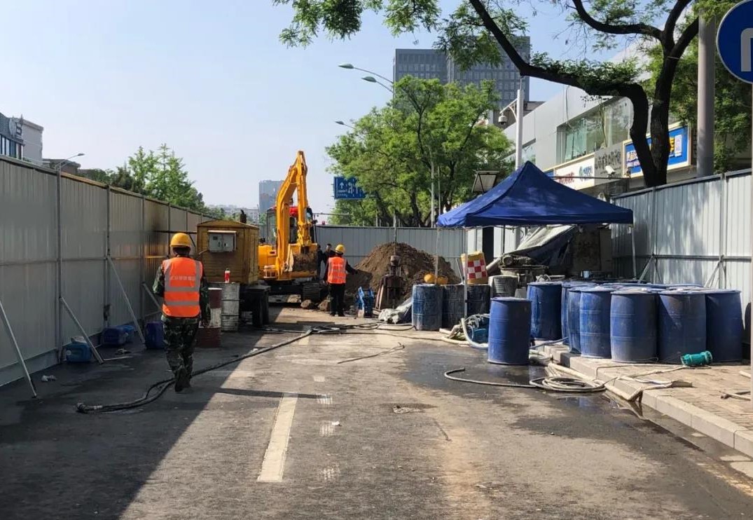 5月1日一早,三公司城南退水渠雨污分流及道路改造工程工地就響起了機械的轟鳴聲,挖掘機、注漿機、鏟車輪番上陣……項目部正在新建路段進行污水接入井的注漿和支護工作,由于該區域地下土質為液陷土,透水性較強,易下陷,項目部經過仔細研究后,決定采用二重管雙液注漿法對污水接入井進行注漿。相較于傳統注漿工法,二重管雙液注漿法將兩種漿液通過雙重管輸送至鉆頭出口處進行混合,通過調節漿液混合方式和注漿的方向性,控制注漿材料的凝結時間等,實現了注漿施工中對注漿方向、注漿量和注漿壓力的控制,使得加固范圍控制變得容易,漿液浪費少,施工可操作性更好,有效確保了工程質量。