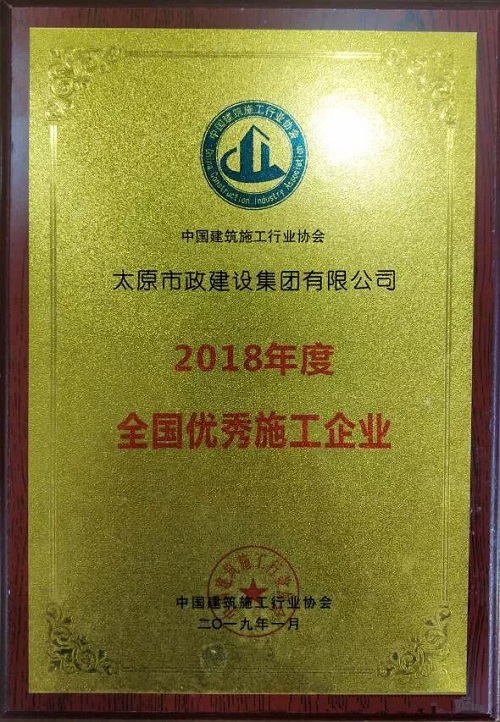 太原市政建設集團有限公司榮獲“2018年度全國優(yōu)秀施工企業(yè)”榮譽稱號