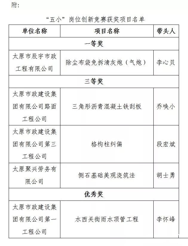 另訊,集團公司五項創新項目被市總工會評為“‘五小’崗位創新競賽獲獎項目”稱號。