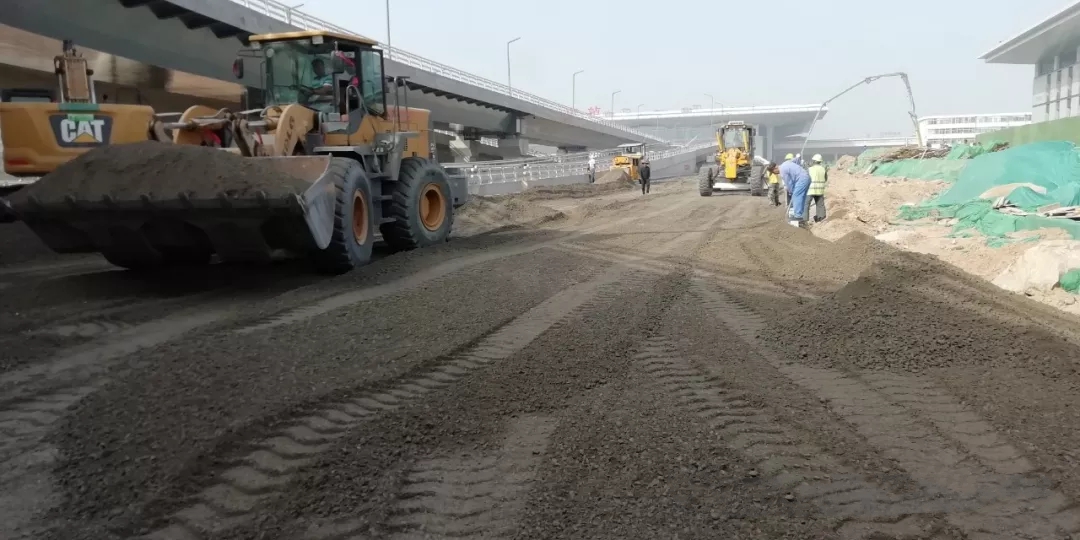 太原市政建設(shè)集團(tuán)有限公司太原南站東廣場配套路網(wǎng)工程龍堡路、規(guī)劃一路、F1路、F2路等10條道路水穩(wěn)鋪設(shè)已全部完成
