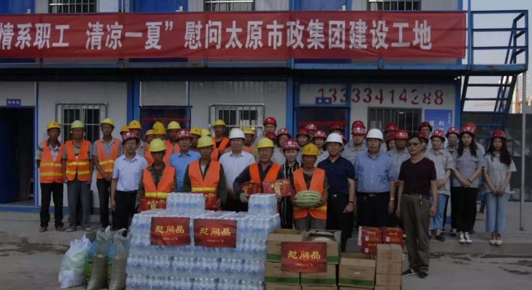 7月25日下午,太原市總工會黨組書記、常務副主席馮潤春,黨組成員、副主席汪倫,權益保障部部長宋繼一行人來到集團公司南上莊片區路網完善工程一線開展夏季“送涼爽”慰問活動。集團公司黨委委員、董事、總經理郝東輝,黨委副書記、董事閆水平,黨委委員、監事會主席、工會主席馮忠陪同慰問。