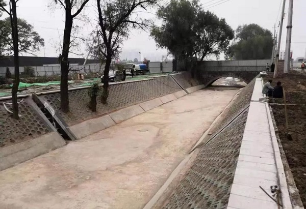 在施工中,由于市內的壓頂磚供應緊張,從市外運送又費時費力,給施工進度造成了一定的影響,為加快施工進度,項目部決定先進行靠背、墊層等環節的施工,最后再進行卡邊石的鑲嵌工序,這樣不僅合理安排了施工工序,還大大加快了施工進度。同時,在作業面狹小的施工段,項目部不等不靠,安排80多名民建隊員同時進行施工作業,采取“人拉肩扛”的作業方式,全力推進施工進度。僅用時不到100天,項目部就完成了1800米的河道的清淤、底板澆筑、邊坡修整等工作任務,主體工程全部完工,整個渠道“煥然一新”。