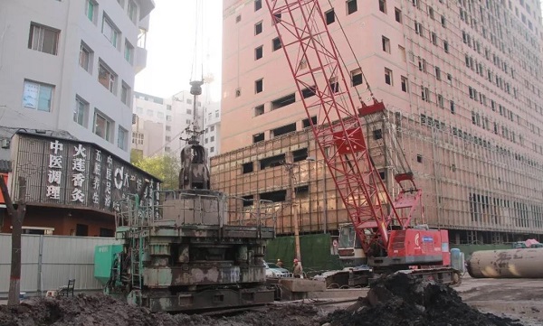 由于該地區都市廣場商場最初建設時基坑較深,地下遺留2到3排錨索在工程頂管頂進范圍內,為后續施工造成了極大阻礙。為了解決施工難題,項目部多次組織專家進行論證,經過反復研究討論后,決定從中鐵一局天津分公司租用了兩臺360°全回轉鉆機,利用鉆機垂直鉆到地下14米處,在下鉆過程中通過套管上的刀頭將錨索切斷,再利用履帶吊和抓斗將錨索抓出,為頂管工序“掃清”了障礙,順利解決了施工難題,為后續工程的順利推進奠定了基礎。