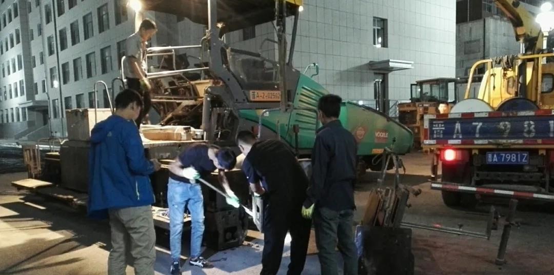 攤鋪機(jī)頻繁輾轉(zhuǎn)于各個(gè)工地之間,正是依靠著由8人組成的維修組在背后的默默付出,確保了攤鋪機(jī)械的正常作業(yè)。