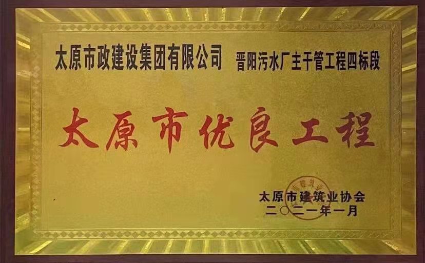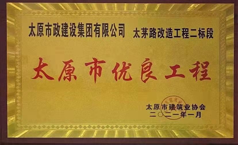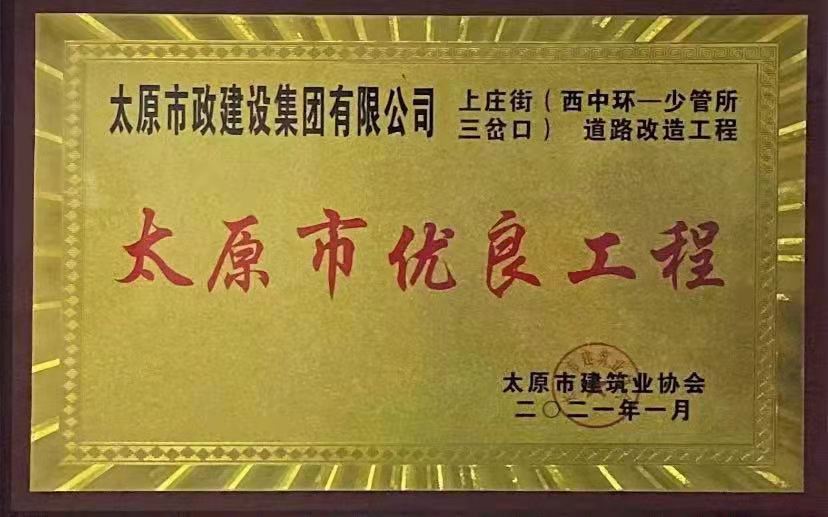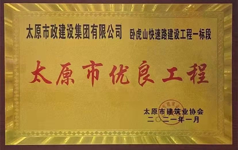 2021年1月13日,集團公司承建的晉陽污水廠主干管工程四標段、太茅路改造工程二標段、臥虎山快速路建設工程一標段、上莊街(西中環——少管所三岔口)道路改造工程被太原市建筑業協會評為2020年“太原市優良工程”,工程項目經理郝東輝、高鴻、李瑞金被評為“2020年度太原市工程建設優秀項目經理”。