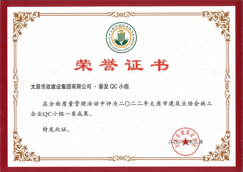 2022年太原市建筑業協會施工企業QC小組二類成果_奮發QC小組