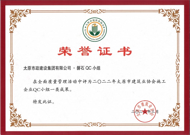 2022年太原市建筑業協會施工企業QC小組二類成果_磐石QC小組